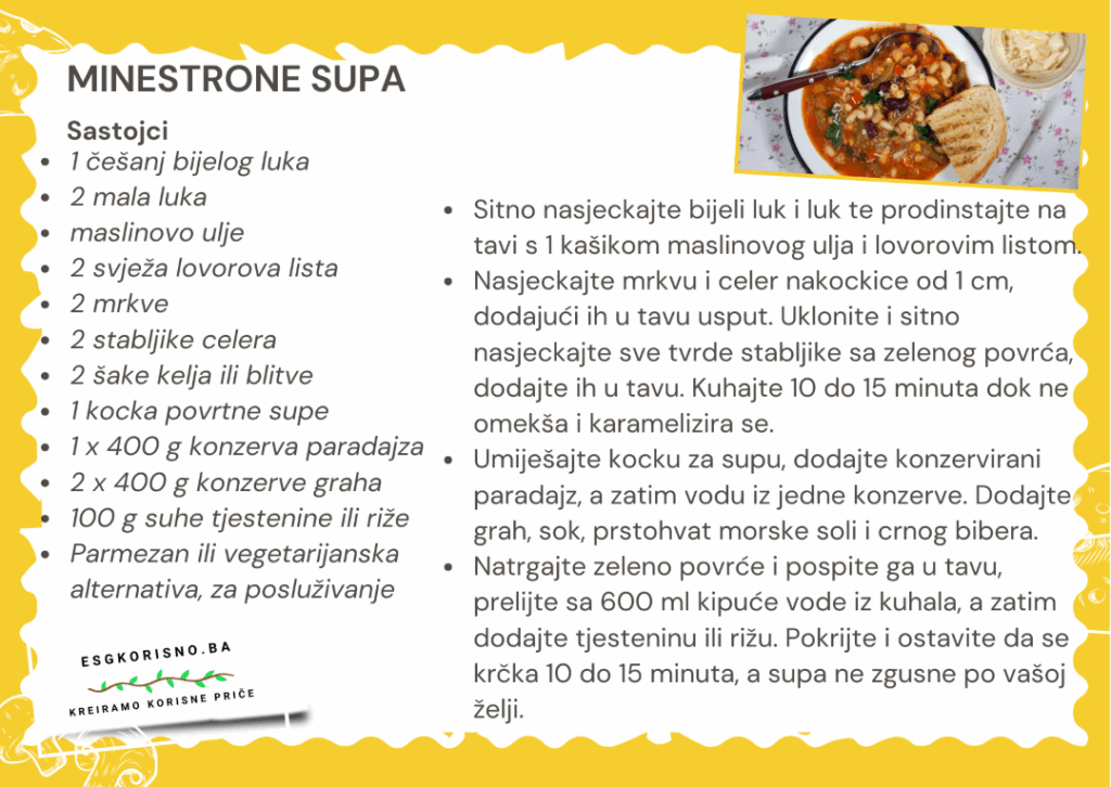 Minestrone supa – recept koji možete lako prilagoditi koristeći bilo koje povrće koje vam je pri ruci. Pametno kuhaj za zdraviju planetu!
